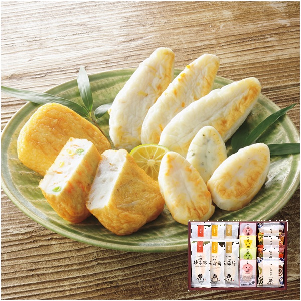 大正5年創業、たらや吉次などが原料の笹蒲鉾や揚蒲鉾などの詰合せ。