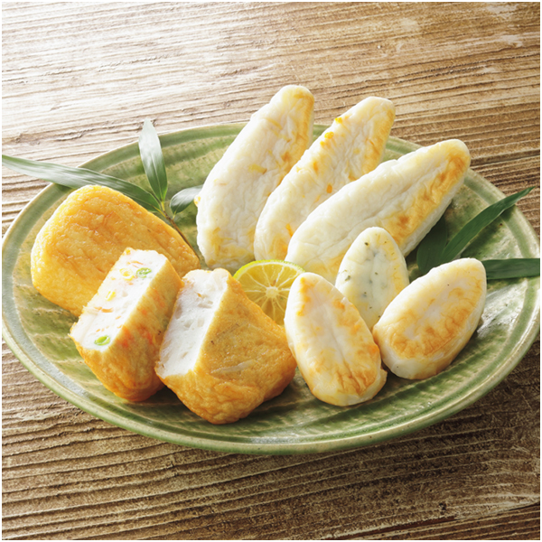 笹蒲鉾(吉次・チーズ・生姜)各2、せんだい小笹(ほたて入2、しそ入、チーズ入)、揚蒲鉾(さつま2、五目、ごぼう)