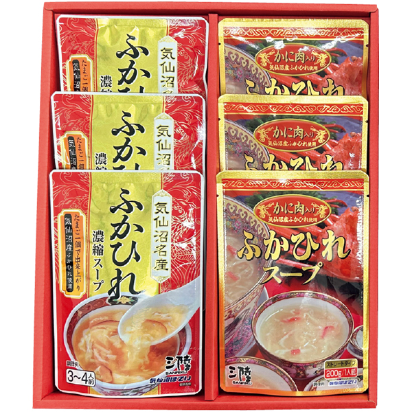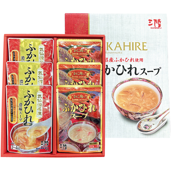 ふかひれ濃縮スープ200g×3、ふかひれスープかに肉入り200g×3