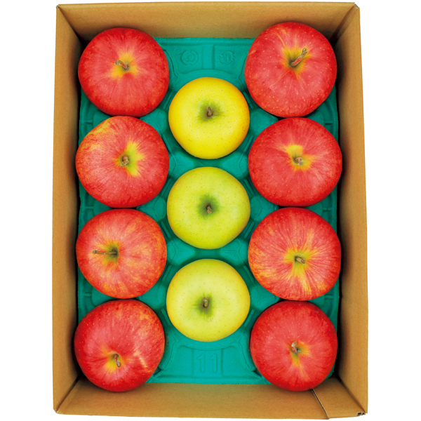 赤と黄色の色鮮やかなりんごセット。華やかな見た目で贈答用におすすめです。