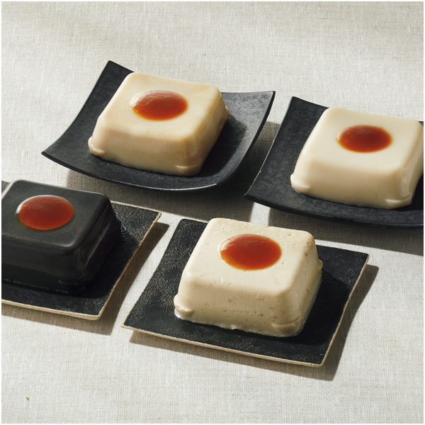 4種の胡麻豆腐と特製みそだれを詰合せ。胡麻の風味ともっちりとした食感が人気です。