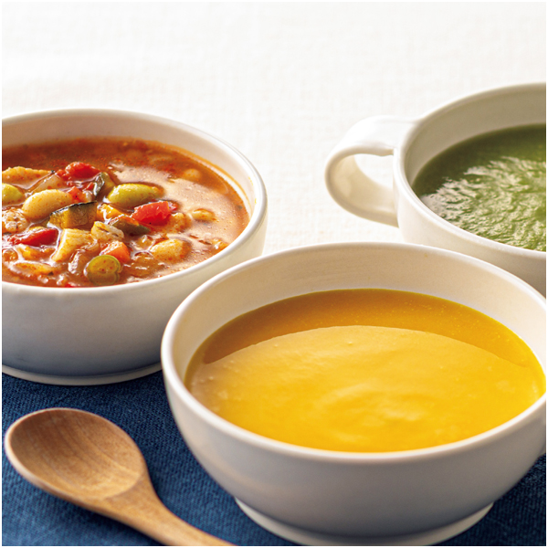 毎日の食事におすすめのスープセット。野菜不足が気になる方・おいしく野菜を味わいたい方・家族の健康を気遣う方に。