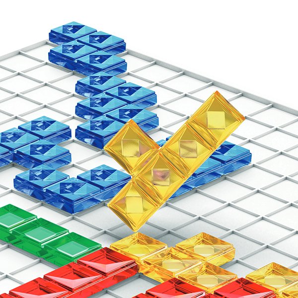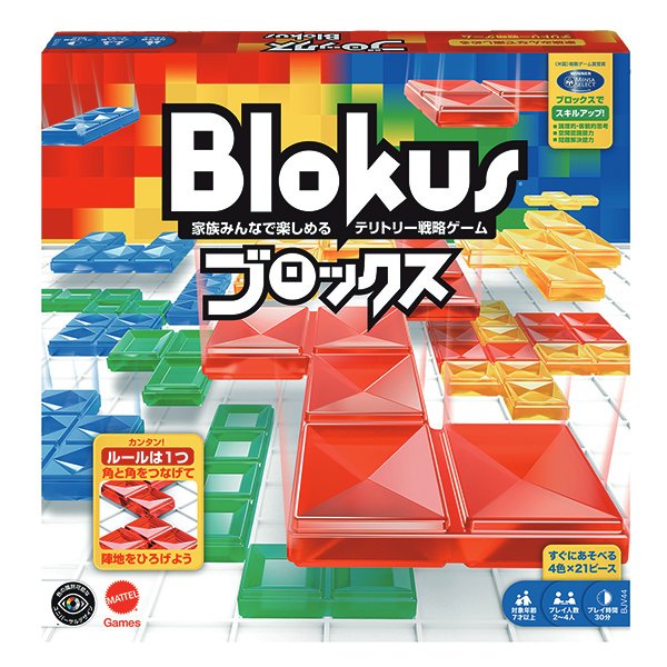 マスに各色21個の形の異なるピースを交互に置いていく陣取りゲーム。
