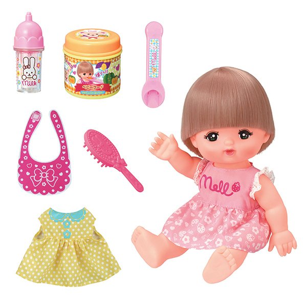 お食事ごっこや着せ替えのお世話遊びができるセット。